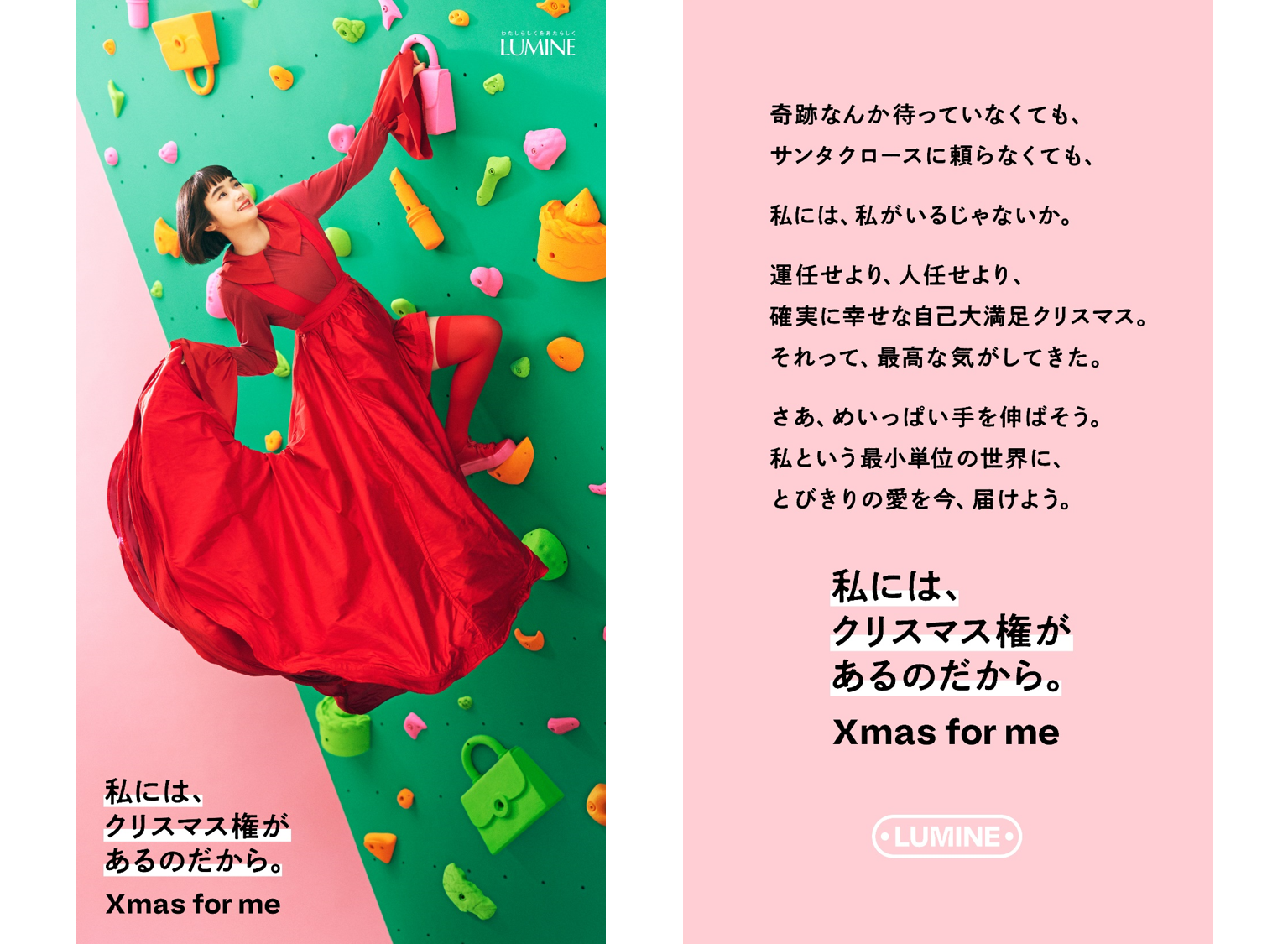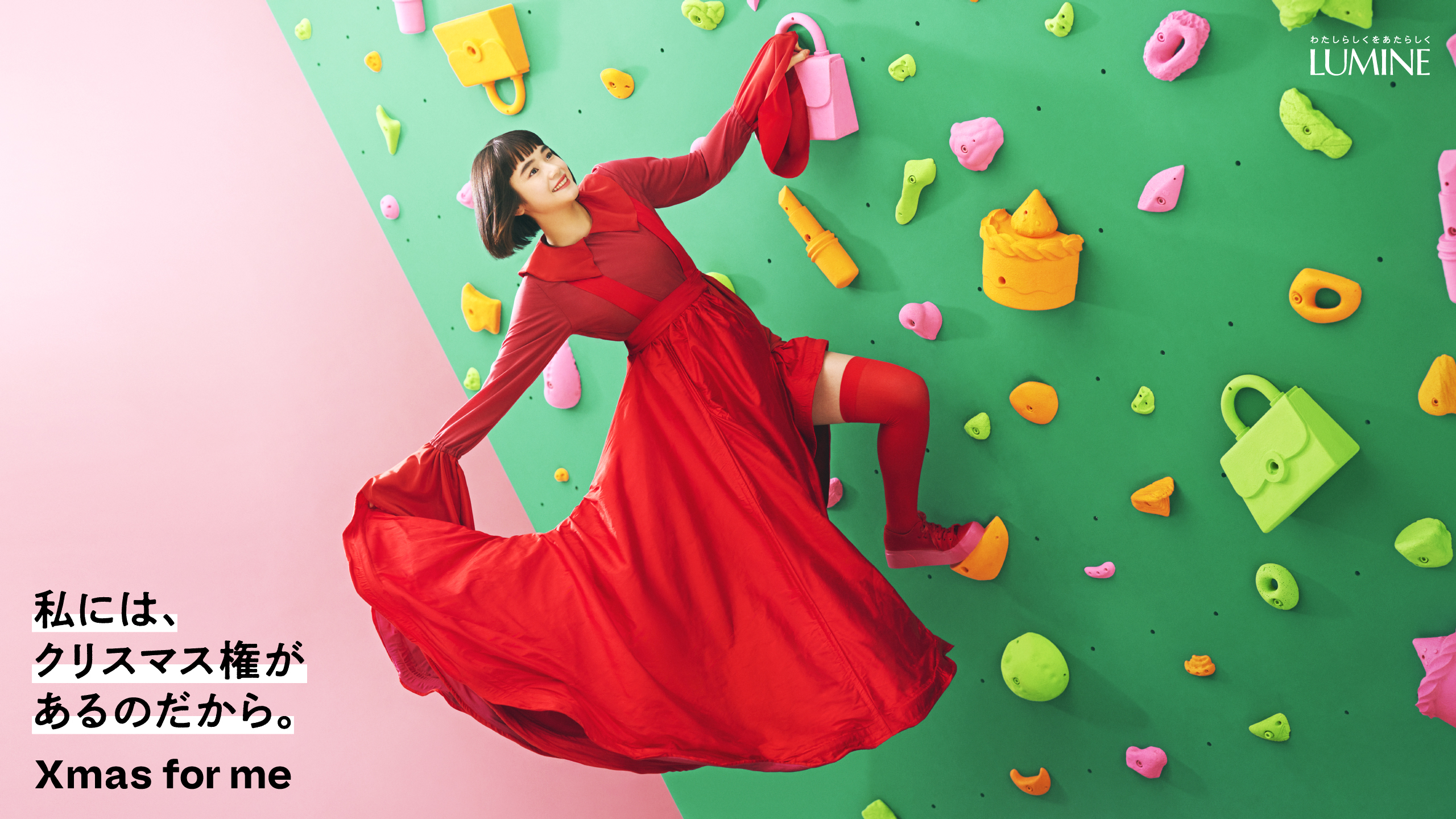 2022年のルミネクリスマスを象徴するビジュアルとして、自分の欲望に素直な姿、欲望を掴み取っていく姿をボルダリングをモチーフに表現しました。