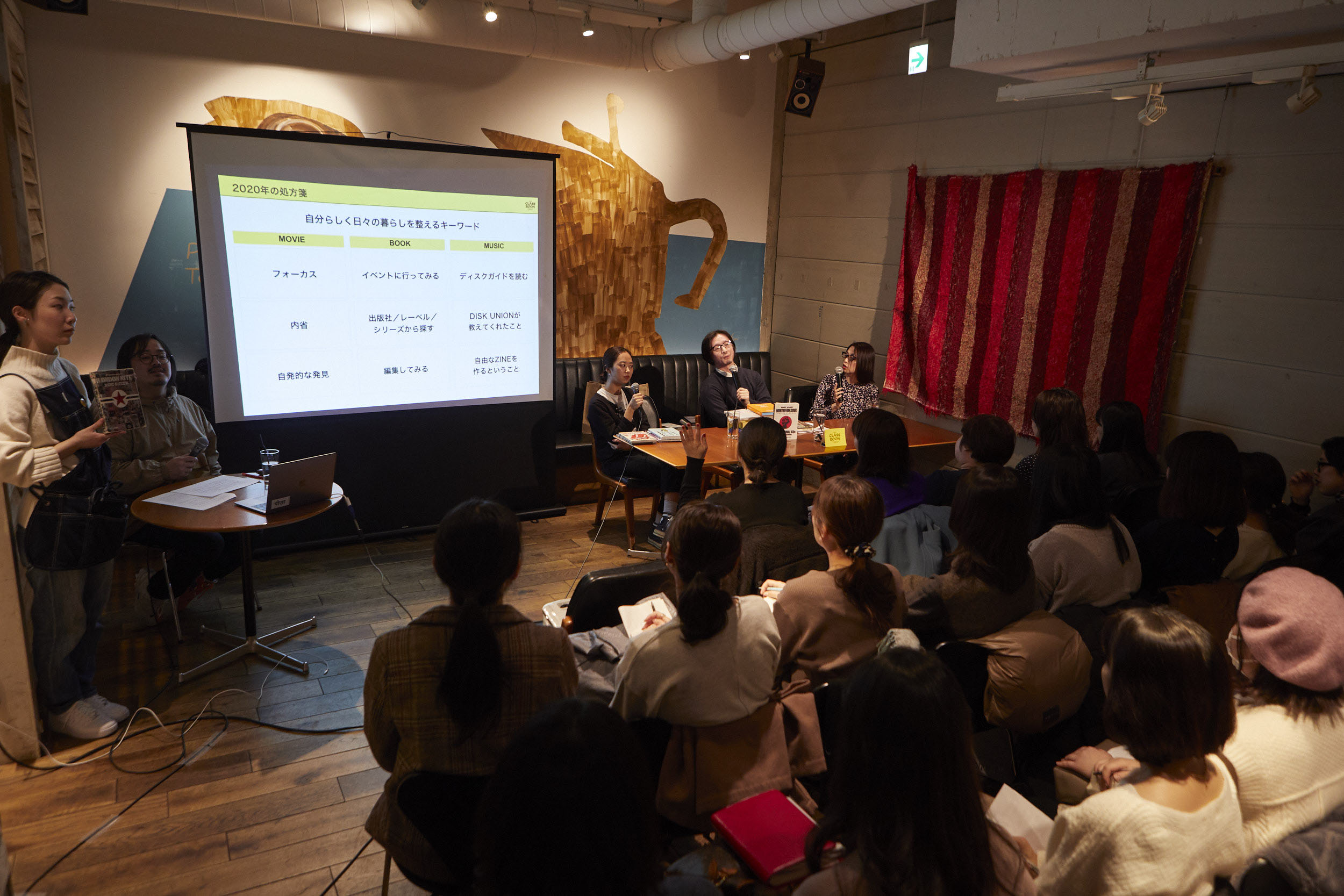 映画や本のコラムを書く山崎まどかさん、書店やライブラリーの選書をする山口博之さん、DJやミュージックセレクターとして活躍する垣畑真由さんをお招きした1月講座では、「2020年の処方箋」にそって一人3キーワード(計9キーワード)を持ち寄り、いくつか選びながらクロストークを進めていきました。最初の話題にのぼったのは、垣畑さんの「ディスクガイドを読む」というキーワードです。