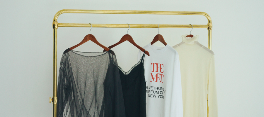ベーシックアイテムは、色と素材を変えるだけでフレッシュな印象に。
