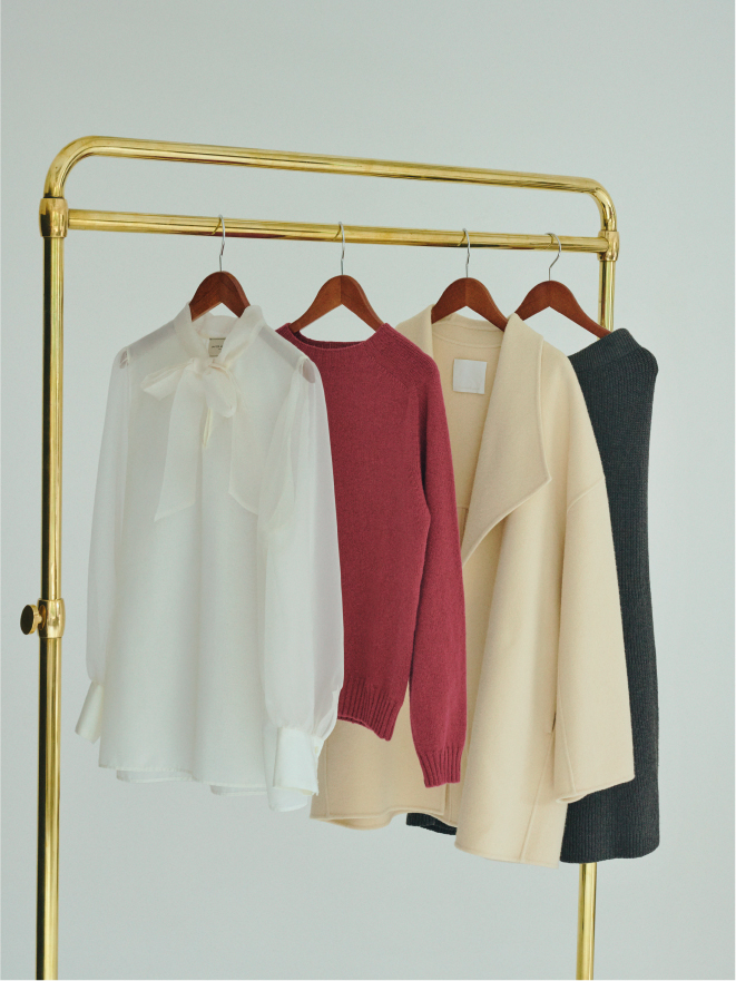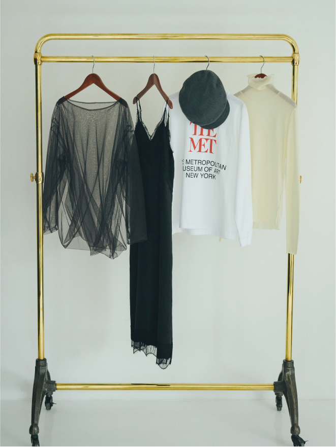 ボリューム袖が主役のブラウスや、レースをあしらった華奢なキャミソールドレスを合わせて、いつもよりほんの少しドレスアップ。