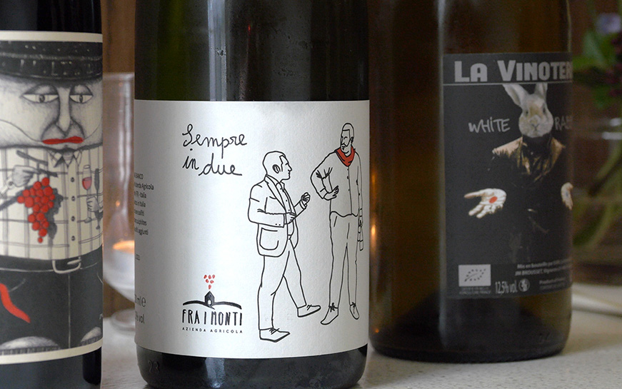 選び方は、飲み慣れている国や品種で選ぶことも多いですし、あとはエチケット(ワインのラベル)ですね。エチケットがかわいいのもナチュラルワインの特徴で、味がイメージできたり、ワイナリーの方向性を体現しているようなものも多いと感じるので、そこのフィーリングで選んだ1本というのがバシッとはまることもあります。
