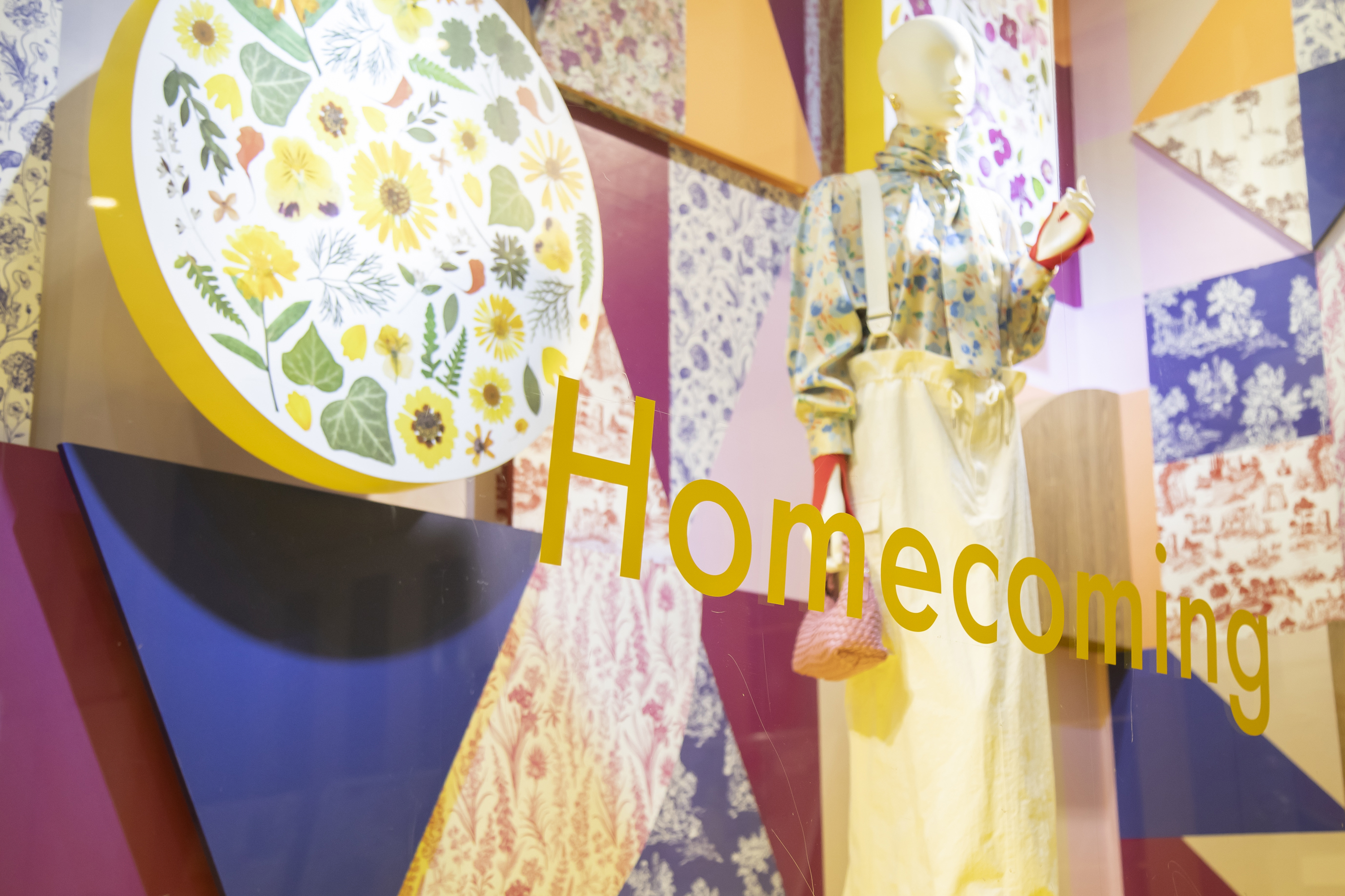 花や植物、風景など、どこか懐かしさもあるようなパターンや親しみのある素材が、幾何学的に配置された今回のシーズンディスプレイ。2023年春夏の大きなテーマである「Explore the Next(“次”への扉を開くとき)」、そしてシーズンディスプレイのテーマである「Homecoming(小さな幸せを拾い集める)」を、安藤さんはどのように解釈したのでしょうか。