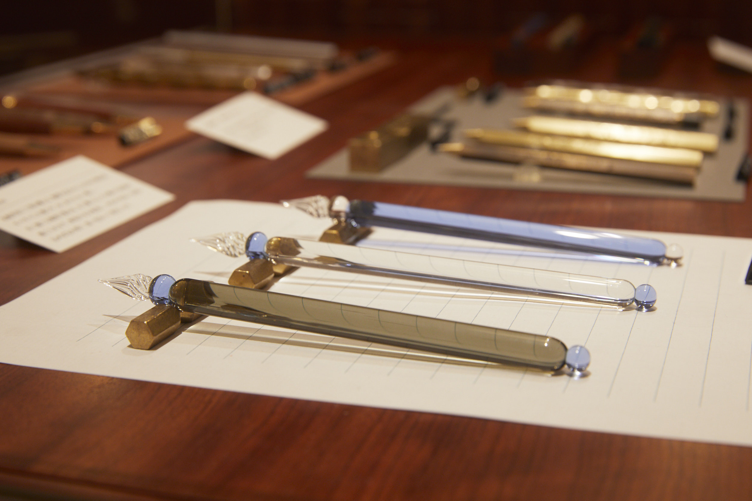 そのひとつとして最近出したのがGLASS NIB。既製品の軸にも、カキモリオリジナルの専用軸にも差せるガラスのペン先です。一般的にガラスペンは軸とペン先が一体になっていますが、「ガラスペンって楽しい。でもペン先が付け替えられたら、もっと道具として使い勝手がいいよね」と商品企画のスタッフが考え、みんなの賛同を得てつくりました。