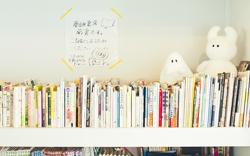 夢眠書店の蔵書コーナー。ねむさんが自宅から持ってきた本が並ぶ。