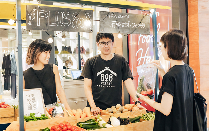 人とのつながりを大切にしてきたプラスヤオヤ。LUMINE AGRI MARCHEに出会ったのも、ルミネの別のイベントに携わっていた山梨県の企画会社からの紹介でした。押田さんは、LUMINE AGRI MARCHEが都会の真ん中である新宿駅で開催されていることに惹かれたそうです。