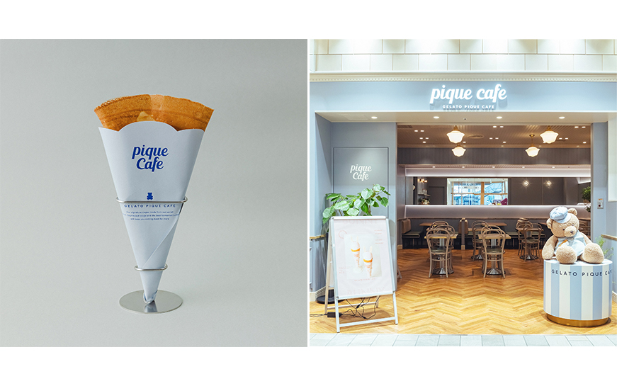 ルームウェアブランド「ジェラート ピケ」から生まれた「ジェラート ピケ カフェ」が多摩地区初出店。入口では、スタッフと同じエプロンと帽子をまとった“ピケベア”が店長としてお出迎え。明るさをおさえた居心地のいい空間で、リラックスした時間を過ごすことができます。