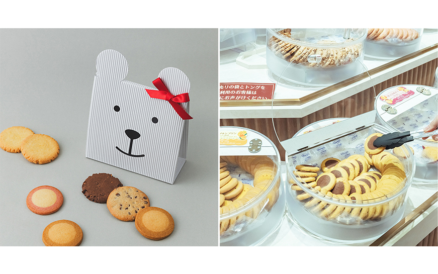 「カントリーベアクラフト(白)」は、人気の「オールドファッションシュガー」「ダブルチョコナッツ」「チョコレートチップ」「キャラメルカスタード」「苺りんぐ」の5種類が7枚入った詰め合わせです。カリッとした食感と、噛むほどに広がるバターと小麦の香りは、子どもから大人までみんなが大好きな味。シロクマのパッケージもかわいらしいので、ちょっとした手みやげにもぴったりです。