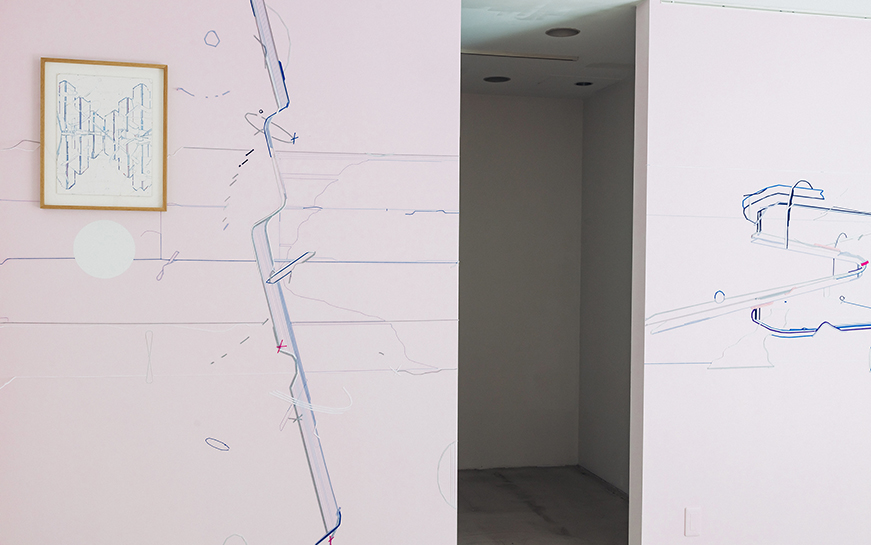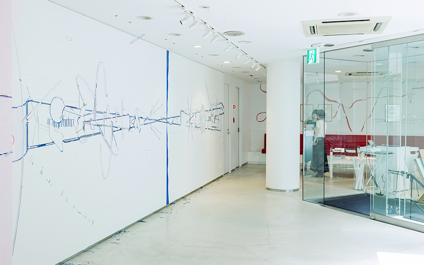 もともとはプレスルームだったという空間は、部屋の全景が見渡せない形をしていたり、小部屋があったり、存在感のある大きな柱が立っていたりと、いわゆる“ホワイトキューブ”とはまったく違う造り。一見使いづらいように感じますが、そのことが反対にアーティストの創作意欲を刺激するのだそうです。既存の作品を展示するよりも空間にあわせて新作がつくられることが多く、まさにここでしかできないアート体験をすることができます。