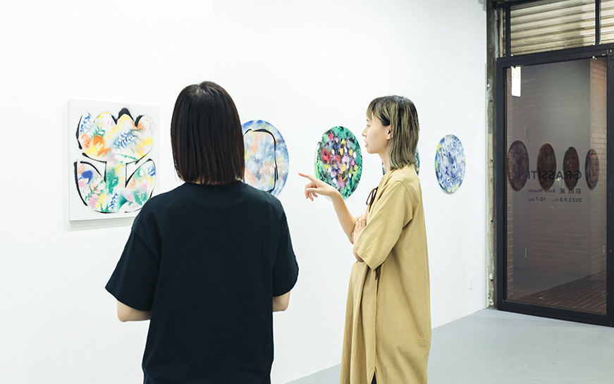 ポリシーは、「『ギャラリー』という敷居は低く、『アート』の質は高く、ファッションや音楽を楽しむようにアートに触れてもらえる機会を提供すること」。まず入りやすい空間にすることはもちろん、お客さまとの対話も大事にしているそうです。アーティストが作品に込めた想いや人となり、制作のエピソードなどを聞くことができ、アートの知識がなくても大丈夫。はじめて訪れた人にもわかりやすく解説してくれます。