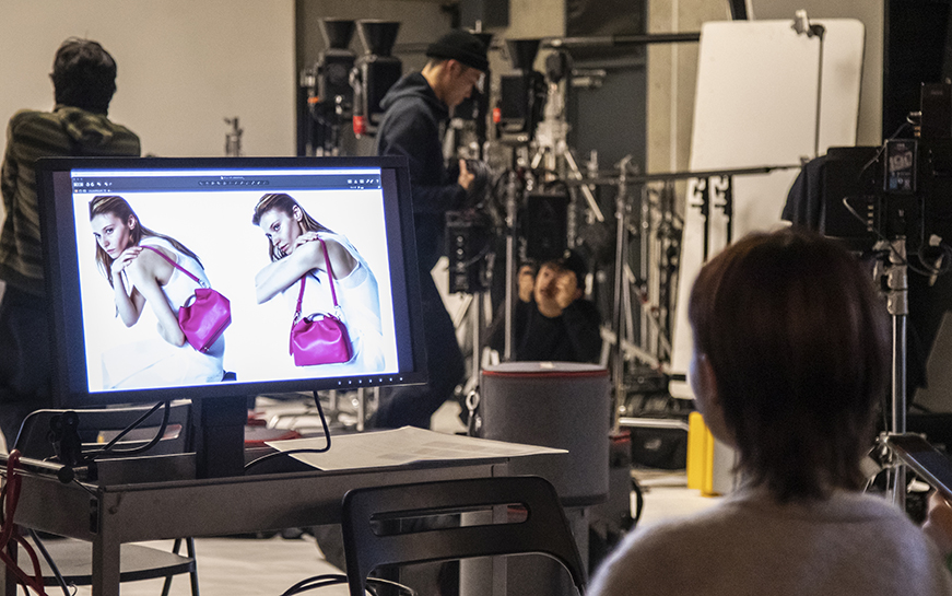 「モデルの肌をレタッチしてきれいにしすぎると広告的な印象になりがちなのですが、今回は肌を整えすぎず、抜け感を持たせて、ファッションシュートに近い感覚を大事にしました。ヘアメイクやスタイリングも撮影チームと打ち合わせを重ねてこだわり、全体でファッション感を高めています」と、山家さん。