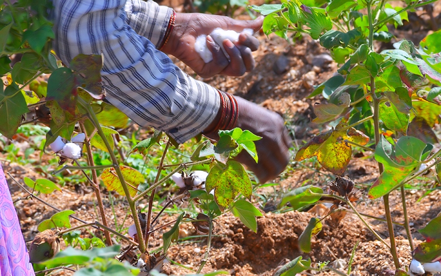 「テネリータ」のタオルの綿に使用されているのは、3年以上農薬を使っていない畑で育つ綿花のみ。機械での収穫をしやすくする枯葉剤を使用せず、手摘みで収穫していく 写真提供=テネリータ