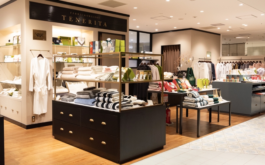 「テネリータ」のニュウマン横浜店。落ち着いたムードの空間に、幅広いアイテムが揃う