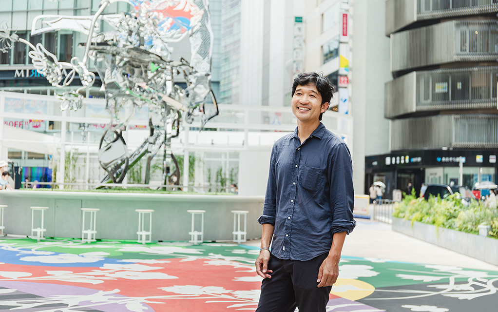 新宿の建物って、古い雑居ビルから新しいオフィスビル、ユニークな形のものまで統一性がないし、看板もたくさんありますよね。それが街のキャラクターのひとつにもなっている。広場をつくるにあたっては、少し彩度を上げないとそんな色とりどりの街に埋もれてしまう可能性もあったので、カラフルな人工庭園みたいにしたんです。彫刻も鏡面仕上げにして、周囲のビルや看板の色が映り込むようにしたら、より際立つかなと考えました。