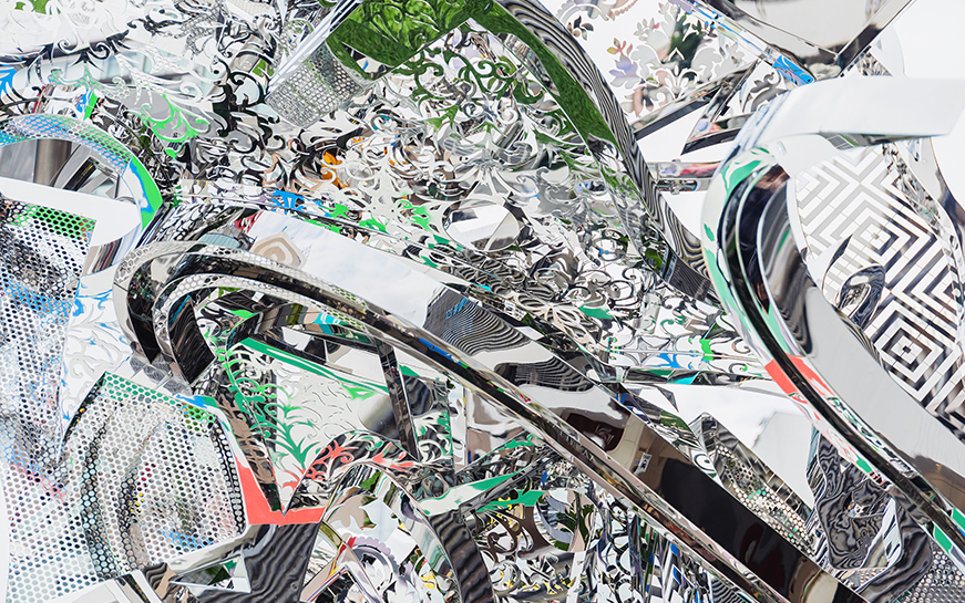 それから、空の色も。夕焼けのときは赤くなるし、曇りだったらグレーっぽくなり、晴れているときはギラッと輝くんです。そうやって周りの環境を模するというか、引き込むようにつくったので、街と一体化してひとつの作品になる。もちろん、自分の姿も映り込みます。