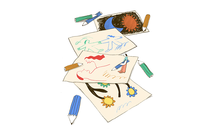 自分の置かれた状況や不安な気持ちを処理するため、自分の描くカラフルなイラストの世界に没頭し続けました。これまでは自分のまわりの人や、自然風景、日々の何気ないやり取りから得られるインスピレーションをイラストに落とし込んでいたのですが、外出ができず家族以外の人たちとの交流が絶たれてしまったあの長い期間は、家族や友人、ガールフレンドとの思い出や記憶を頼りに制作することが増えた気がします。レコードでお気に入りの音楽を流し、かつての平穏な世界に想いを馳せ懐かしむ。そんな時間を大切にするようになりました。まだまだ孤独や不安な気持ちを描いてしまうこともありますが、以前よりも家族やカップルなどの“人”や”繋がり“をテーマにしたあたたかい作品が多くなったように感じます。