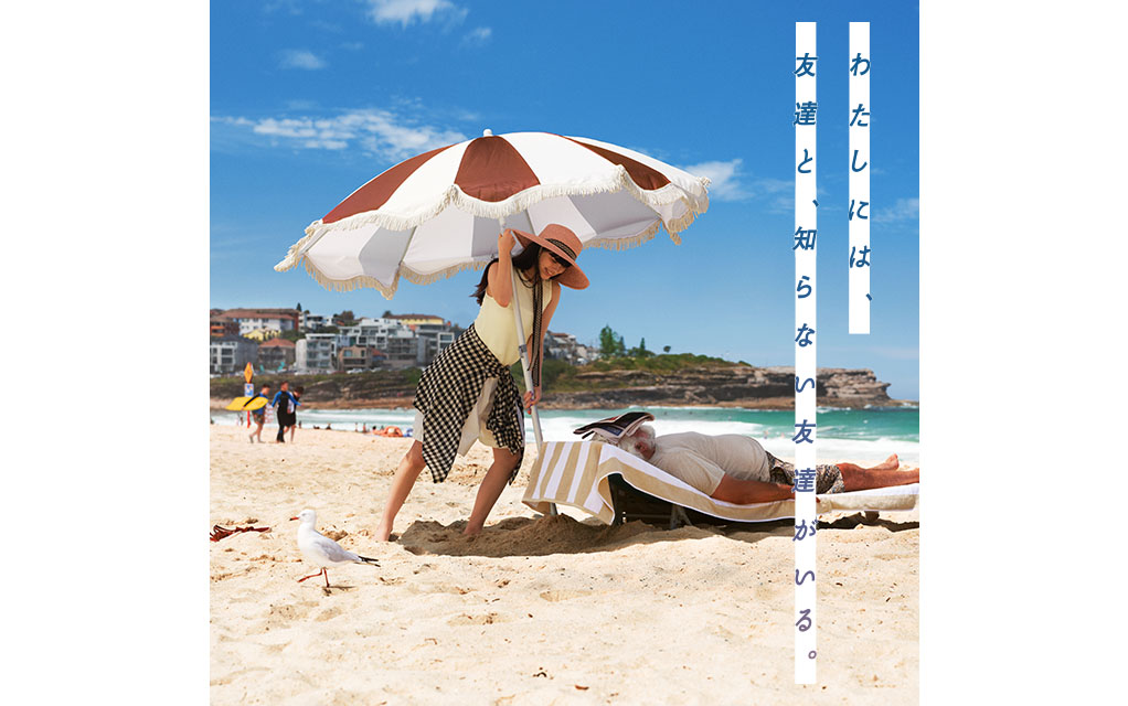 撮影はオーストラリアのノースシドニーで行われました。“小さなヒーロー”を演じたのは、春と同じく女優の中西希亜良さんです。はじめは少し緊張していた中西さんでしたが、撮影時間の前にスタッフたちと交流を深め、本番を迎えるころにはリラックスした表情に。砂が柔らかくパラソルが刺さりにくかったり、なかなか雲が晴れなかったりしながらも、チームワークを発揮して終始和やかなムードで進められました。