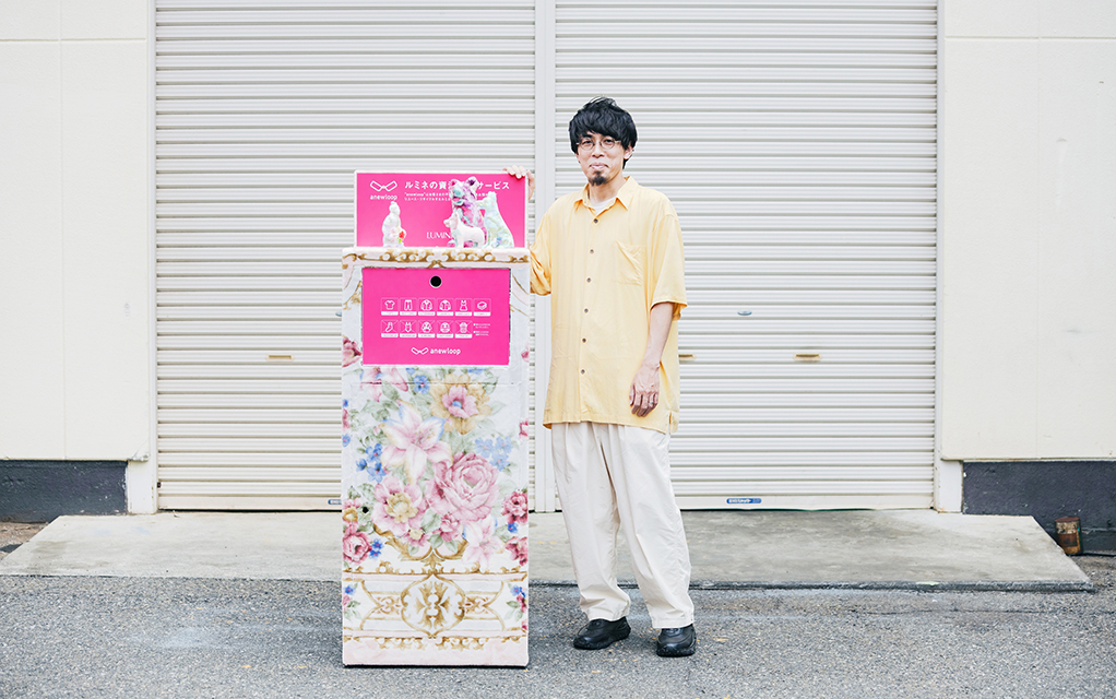 開催にあわせて、各館の館内に常設している資源循環サービス「anewloop」の衣料品回収ボックスをリニューアル。レトロな花柄の毛布を使ったアート作品で知られる気鋭のアーティスト、江頭誠さんが制作を担当しました。江頭さんは、どのようなコンセプトで制作にあたったのでしょうか。また、普段の活動で大切にしていることやエシカルへの意識についてもうかがいました。