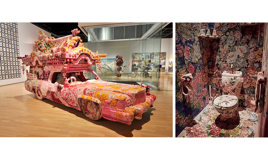 左/「第18回岡本太郎現代芸術賞」で特別賞を受賞した《神宮寺宮型八棟造》(2015年)画像提供:川崎市岡本太郎美術館 右/「SICF17」でグランプリを受賞した《お花畑》(2016年)
