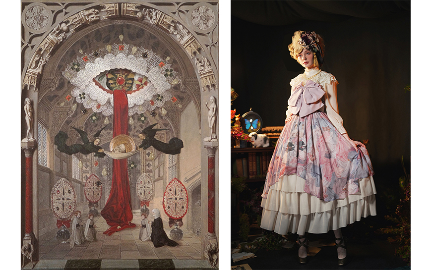 美しいものを食べて生きる高貴な人たちをテーマにした作品《Epicure Gourmet》。「食事は他の命を食べて生きるということですから、頭蓋骨のモチーフを忍ばせています」とスズキさん。