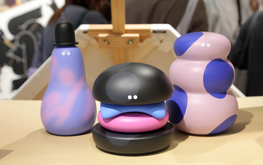 タイやフィリピンからわざわざ足を運んだ人や、EMUさんによるワークショップイベントの開始を会場周辺でそわそわしながら待つ人、過去に購入したEMUさんの作品の写真を誇らしげに見せてくれる人など、多くのファンの熱量が会場を包んでいました。EMUさんが在廊した4日間、「また会いに来ました」と連日訪れるリピーターも。ワークショップの合間も、サインや会話を求める人の列が途切れることはありませんでした。
