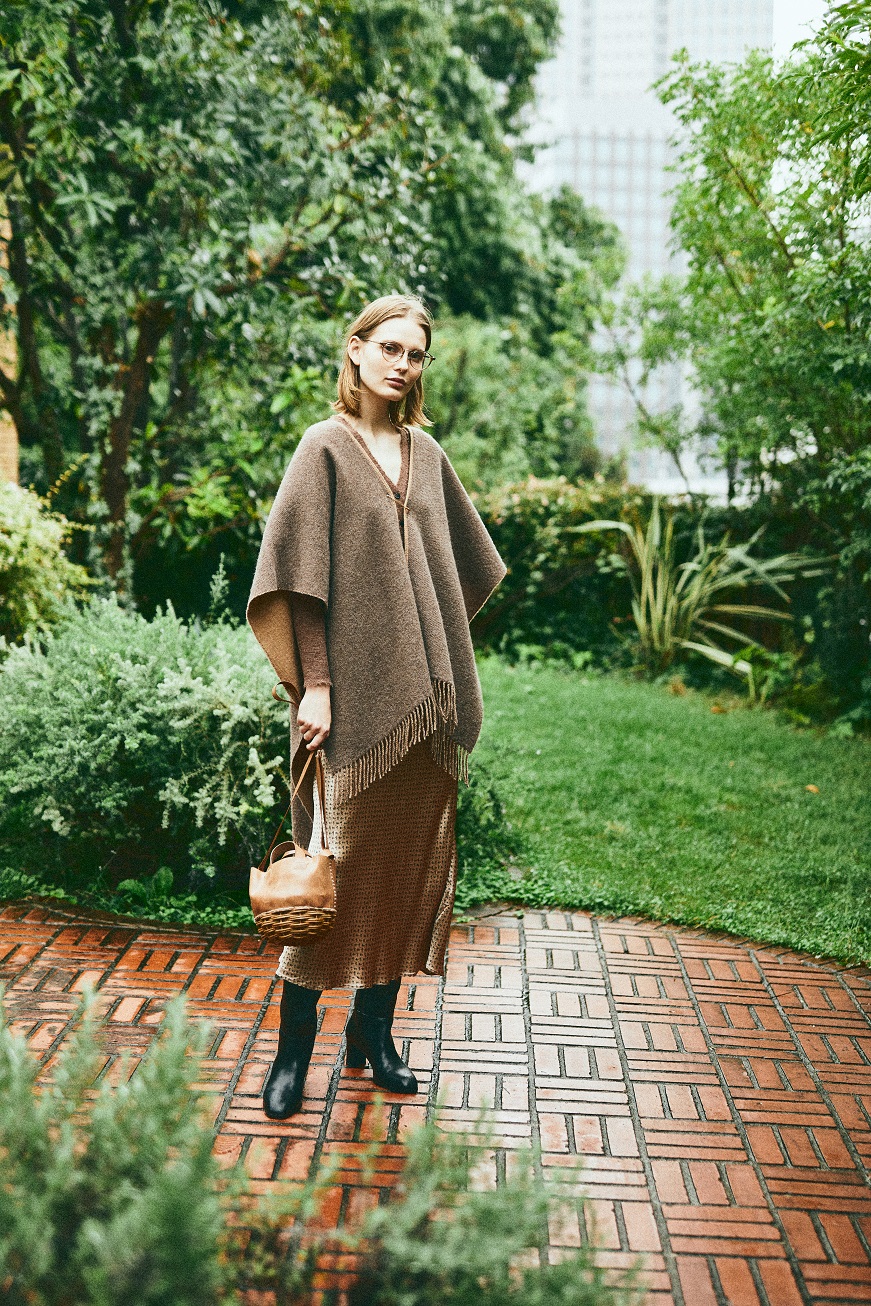 ロングカーディガンやポンチョといった、冬の始まりでも浮かないくらいのさっと羽織れる軽めアウターは、ちょっとそこまでの外出にも重宝。