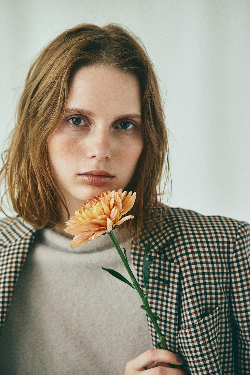 表情を整えるようにエクリュベージュノマットなリップを仕上げにON。