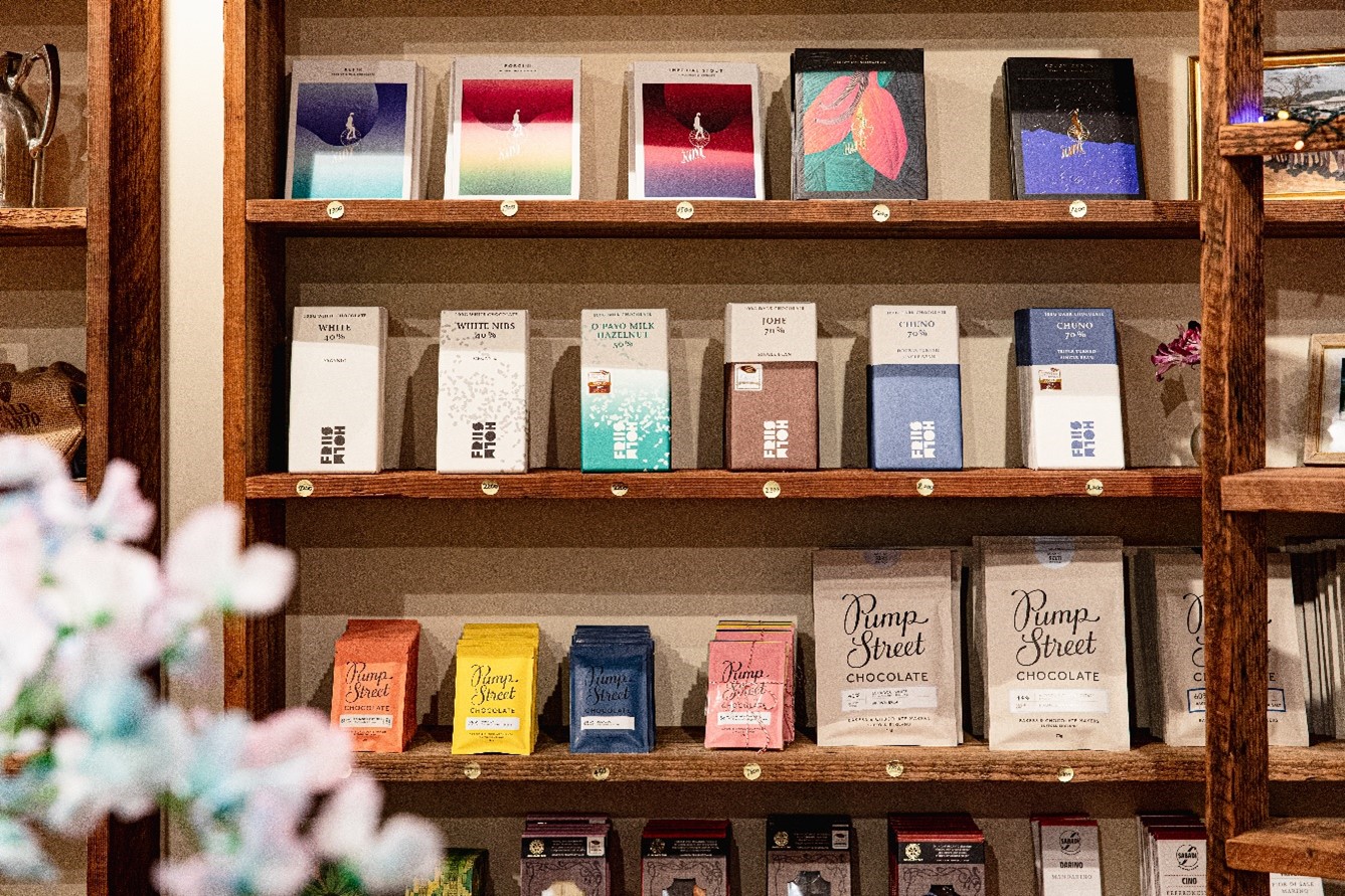 約100種のビーントゥバーチョコレートが壁一面を彩る「The Meadow」