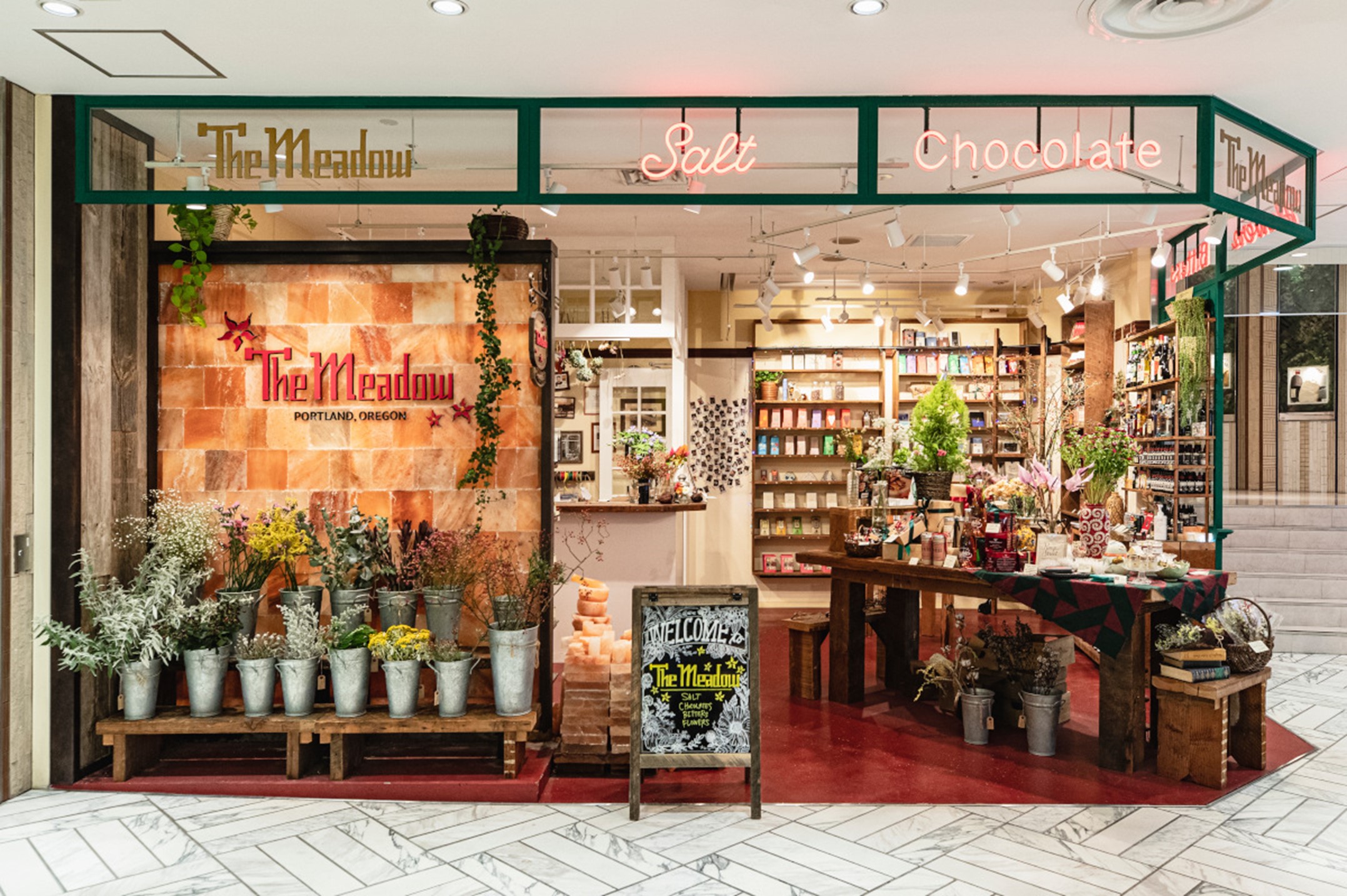 ルミネ2の1階にある「The Meadow(ザ・メドウ)」は、世界中から集めたビーントゥバーチョコレートに出会える場所。チョコレートのほかにも、伝統的な手法で作られた約60種類の塩や、カクテルや料理の香りづけに使われるビターズ、暮らしを彩る花などが並ぶ、アメリカ・オレゴン州ポートランド発祥のクラフトフード専門店です。本国から直送した廃材を使った、温かみのあるインテリアも魅力。
