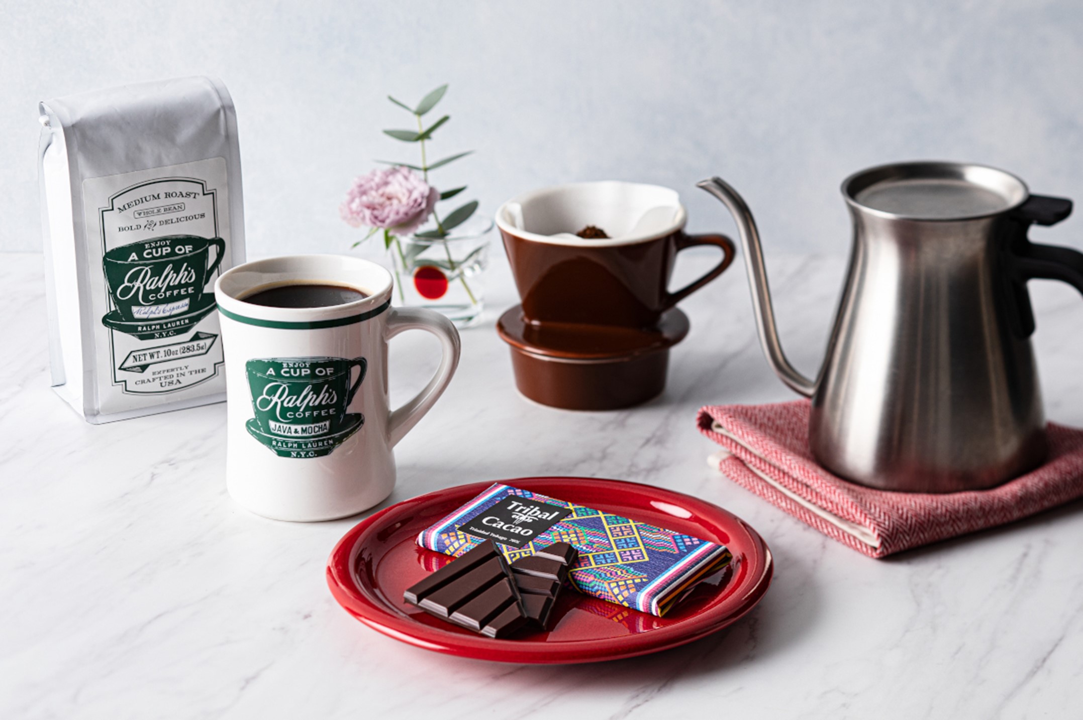 こちらは、コロンビア・ペルー・パプアニューギニア産のコーヒー豆を独自に配合した「Ralph'sオーガニックドリップコーヒーブレンド」(283.5g・税込3024円)と好相性です。やさしい酸味、ほのかな苦み、ほどよいコクとバランスが抜群で、ホワイトチョコレートの味わいや香り、余韻を存分に堪能できます。