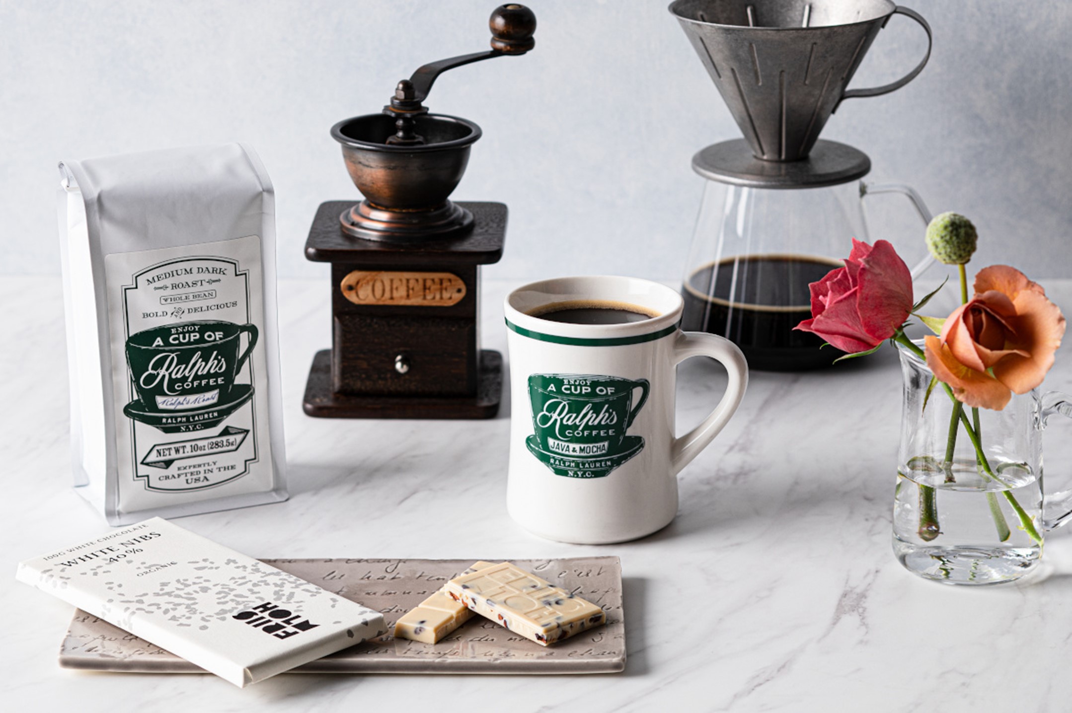 The Meadowのチョコレートにぴったりなコーヒーは、同じく1階にある「ラルフズ コーヒー」で見つかります。こちらは「ポロ ラルフ ローレン」に併設するカフェ。力強く、風味豊かなコーヒー豆を3種類販売しています。