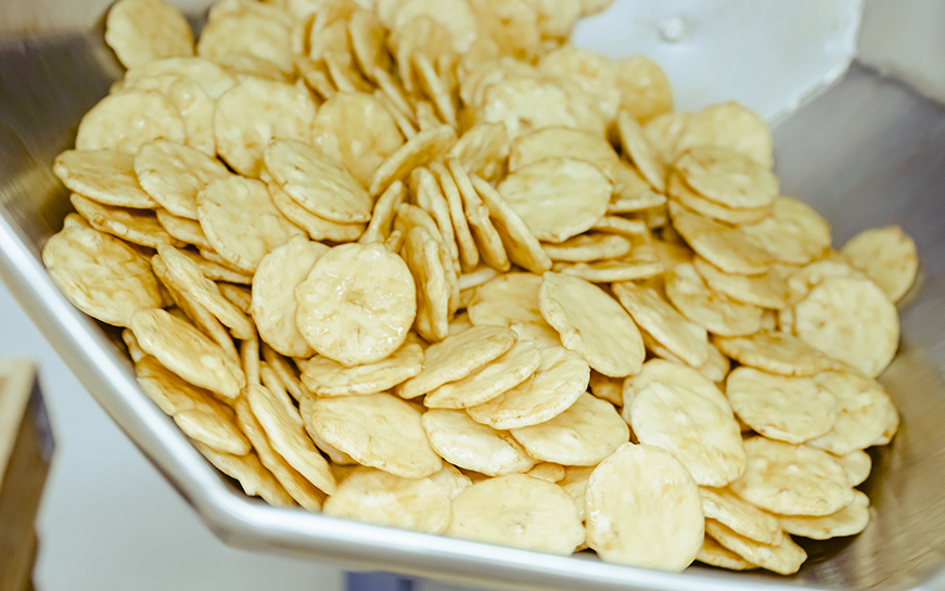 お米も、それ以外の素材も国産にこだわり、なるべく添加物を使わず素材の味を生かして製造しています。おいしいお煎餅をつくるためには、生産者さんの存在が欠かせません。生産者さんとの長年のつながりを大事にしながら、そのまま食材として使ってもおいしい素材を、あえて煎餅の材料として使っています。
