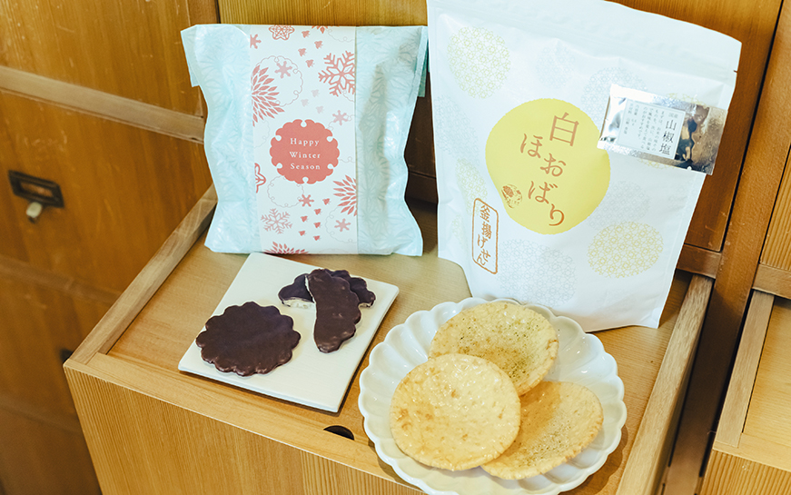 お煎餅もそうですよね。小さい頃は、家に帰ると菓子皿にお煎餅が置いてあったという人も多いのではないでしょうか。昔ほどお米を食べなくなった今の時代、「お米の味がしますよ」と言ってもなかなか伝わりづらいので、お煎餅を食べたあと「口に残るこの甘みはなんだろう」と感じたその味は、お米の味なんですよと伝えられたらいいかなと思っています。そんなふうに、時代に合わせてほどよく変化させながら、お煎餅の文化を守っていきたいですね。