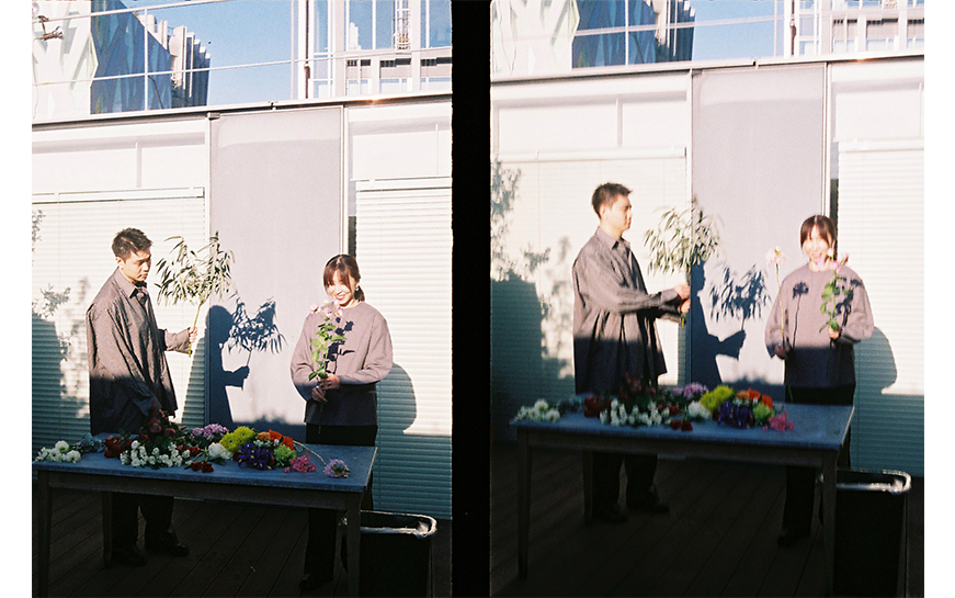 6〜7年前に市場で出会って以来、お互いのショップや展示を行き来するようになった花屋の越智康貴さんと篠崎恵美さん。ともに花にまつわる仕事をしながら接点のなかった2人が唯一無二の存在になったのは、人柄に惹かれ、自分とはまったく異なるセンスを認め合えたから。それぞれが選んだ花材を交換してアレンジメントする、花を通じたコミュニケーションで感じたこととは。