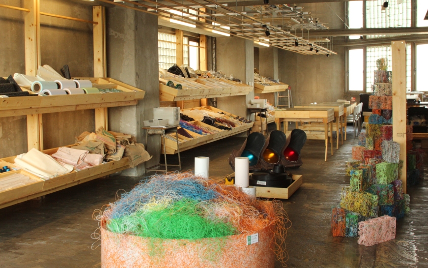 まずは、廃棄物のもつネガティブなイメージを一掃するべく、前述のような楽しいマテリアルを生産。2011年に東京デザイナーズウィークに出展したのをきっかけに、「新しくて面白い素材を提供する会社」として、建築デザイン業界に広く知られるように。工場見学やワークショップも人気があり、以前は夏休みの自由研究のためにやってくる家族連れが多かったが、世の中の流れを受けて、近年は民間企業の社員研修に活用されるケースが増加。