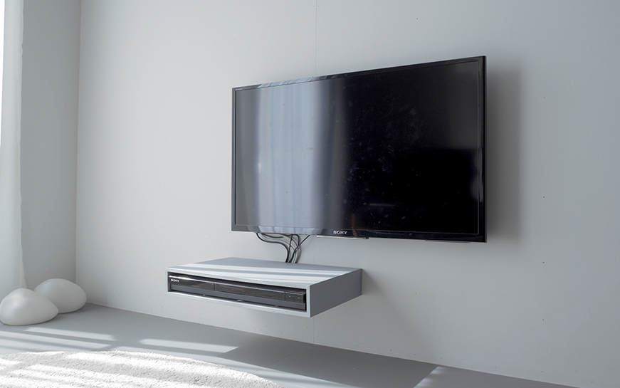 はい。以前から、テレビ台というものがどうも嫌だなと思っていまして。なんとなく上にものを置いちゃって、ごちゃごちゃしてきますよね。なので、この家に住むにあたって、テレビボードを置くのはやめてテレビは壁付けにしようと決めました。