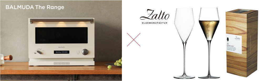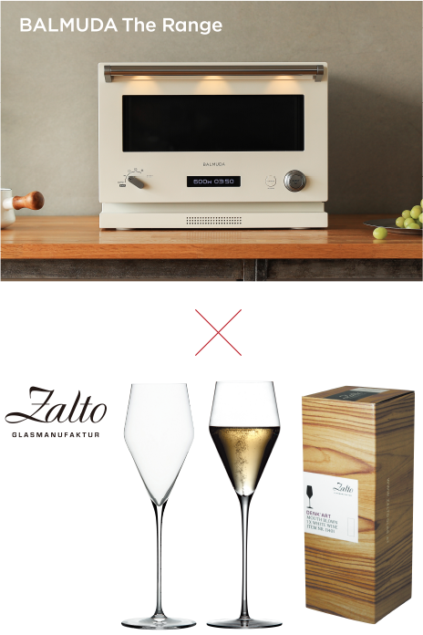 バルミューダ ザ・レンジ(ホワイト)×ザルト(Zalto)デンクアート シャンパン グラス 2脚セット
