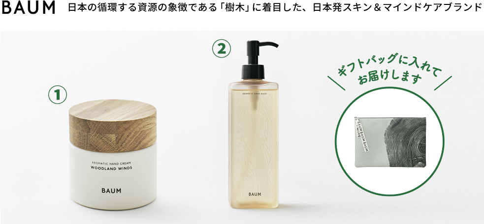 立ちのぼる森林浴の香りが心地よいハンドクリームと、みずみずしい清らかさへ誘うハンドソープ。