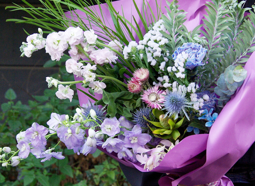 これまでは季節ごとに花の名所に出かけたり、お花屋さんで目にしたグリーンなどを楽しんでいた方も、外出自粛期間中はそれが叶わなかったことも多かったと思います。そこで季節ならではのお花をお家で楽しもうと、私たちのところでブーケを頼んでくださったようです。