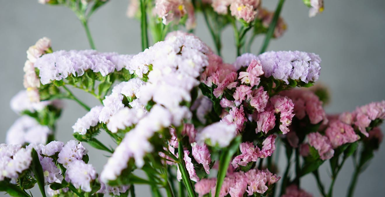 また、スターチスというお花も秋以降にたくさん出回るんですが、これがすごくきれいなドライフラワーになるんです。