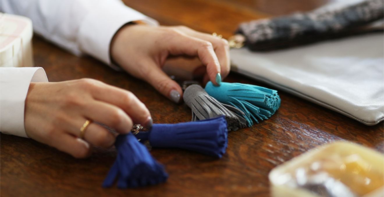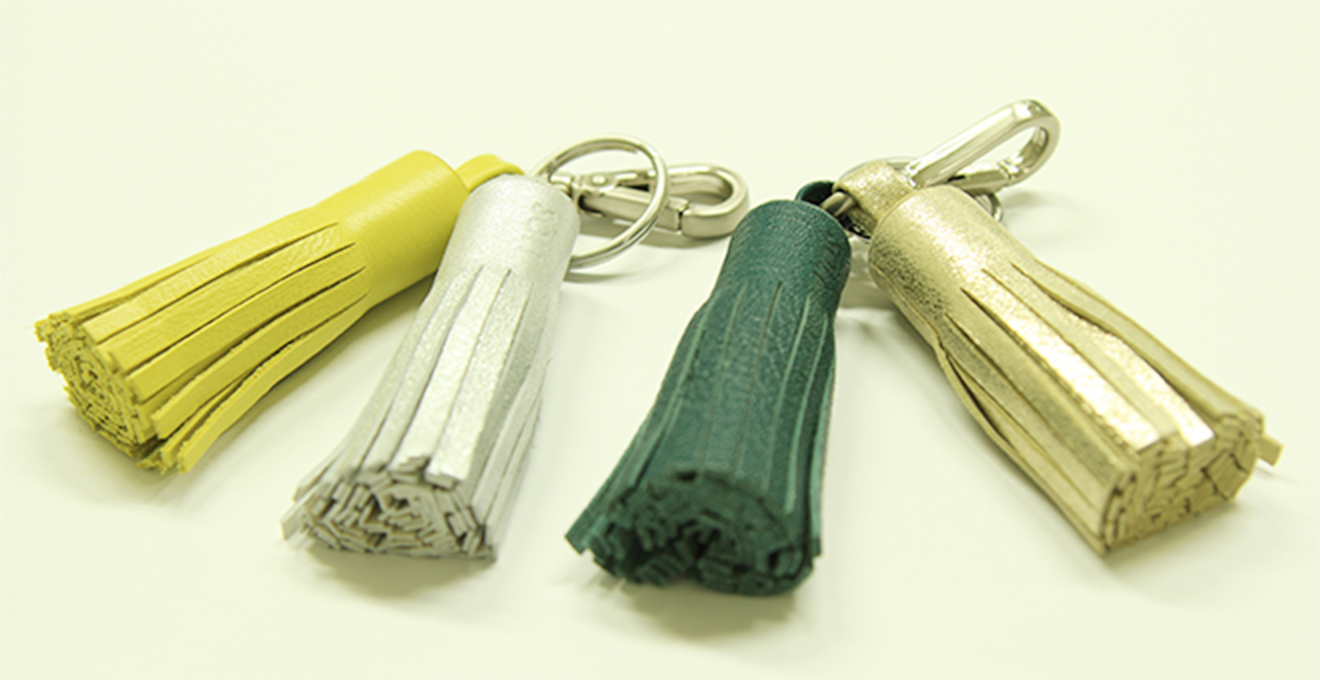 川村さん、加納さんと相談しながら、悩みに悩んで選んだ色の組み合わせ。肌触りのよい上質なレザーの質感も、持っているだけで気持ちを高めてくれそう。自分だけのオリジナルレザータッセル作りにご満足いただけたようでした。