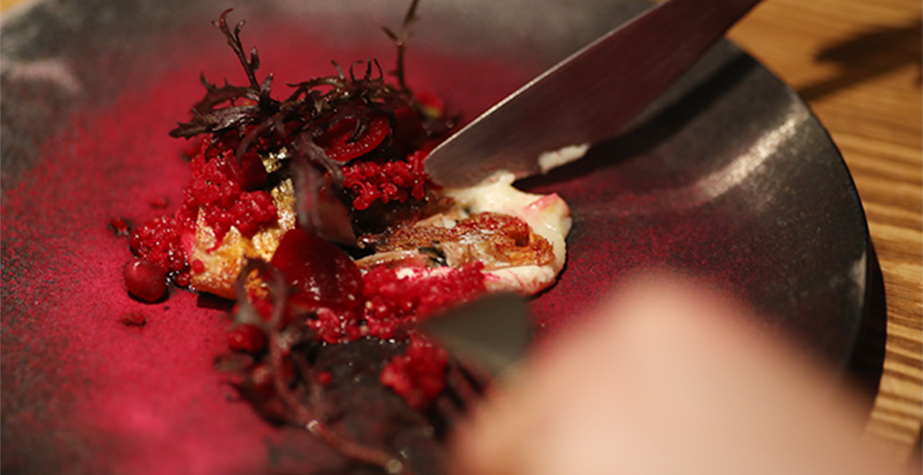お皿の中で物語が展開しているかのようなドラマティックな料理の数々とともに、シャンパンで乾杯! ゆったりと今日の余韻に浸ります。