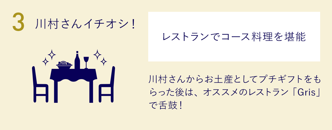 そして最後のプレミアム体験は、川村さんオススメのレストラン「Gris」でのお食事。
