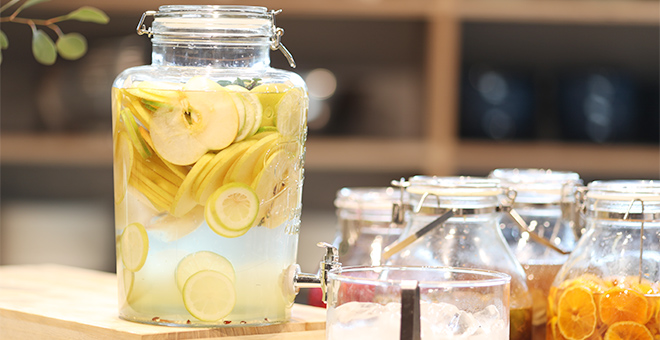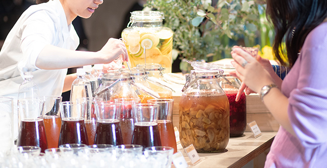 いちじくやジンジャーなどを使ったMOMOE自家製シロップのソーダ割など、イベントの期待感を煽るすてきなウェルカムドリンクがお客さまを迎えます。