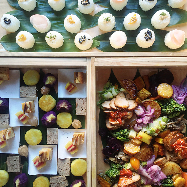 「企業様の新年会用のケータリングでは、赤や緑を使ってお正月らしさを出しました。男性が多いCMスタジオの現場では、がっつりとお腹にたまる根菜を多めにしてボリュームを意識しています」(稲垣さん)