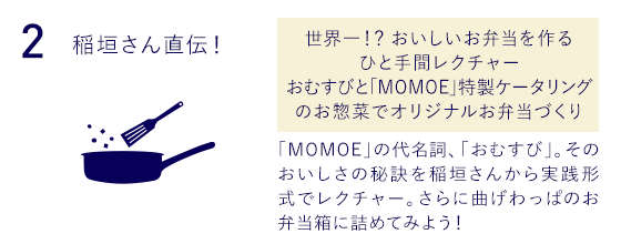 「MOMOEでは、隠岐の島の海士町(あまちょう)というところで作られたあいがも米を使っています。ケータリングフードは炊きたてを提供することが難しいので、時間が経つとどうしてもお米が固くなってしまうのが悩みでしたが、このあいがも米は普通のお米より水分量が多いので、お弁当にしても柔らかな食感が楽しめる。とっても甘くて弾力があって、本当におすすめです」(稲垣さん)