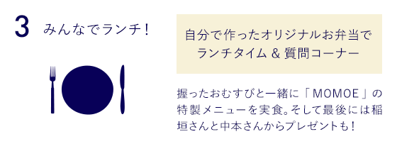 そんな稲垣さんが作り出すMOMOEのケータリングの大ファンと話すのが、モデルであり、フードデザイナーとしても活躍する中本さんです。
