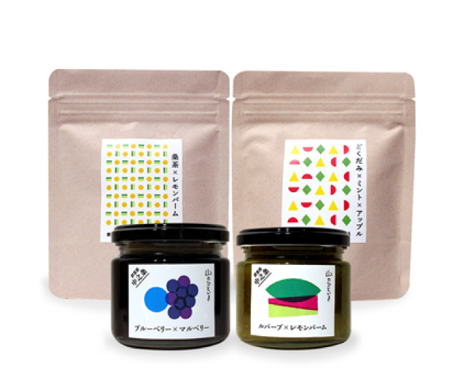 「山のひといき」シリーズとして、ジャムとお茶をラインナップ。