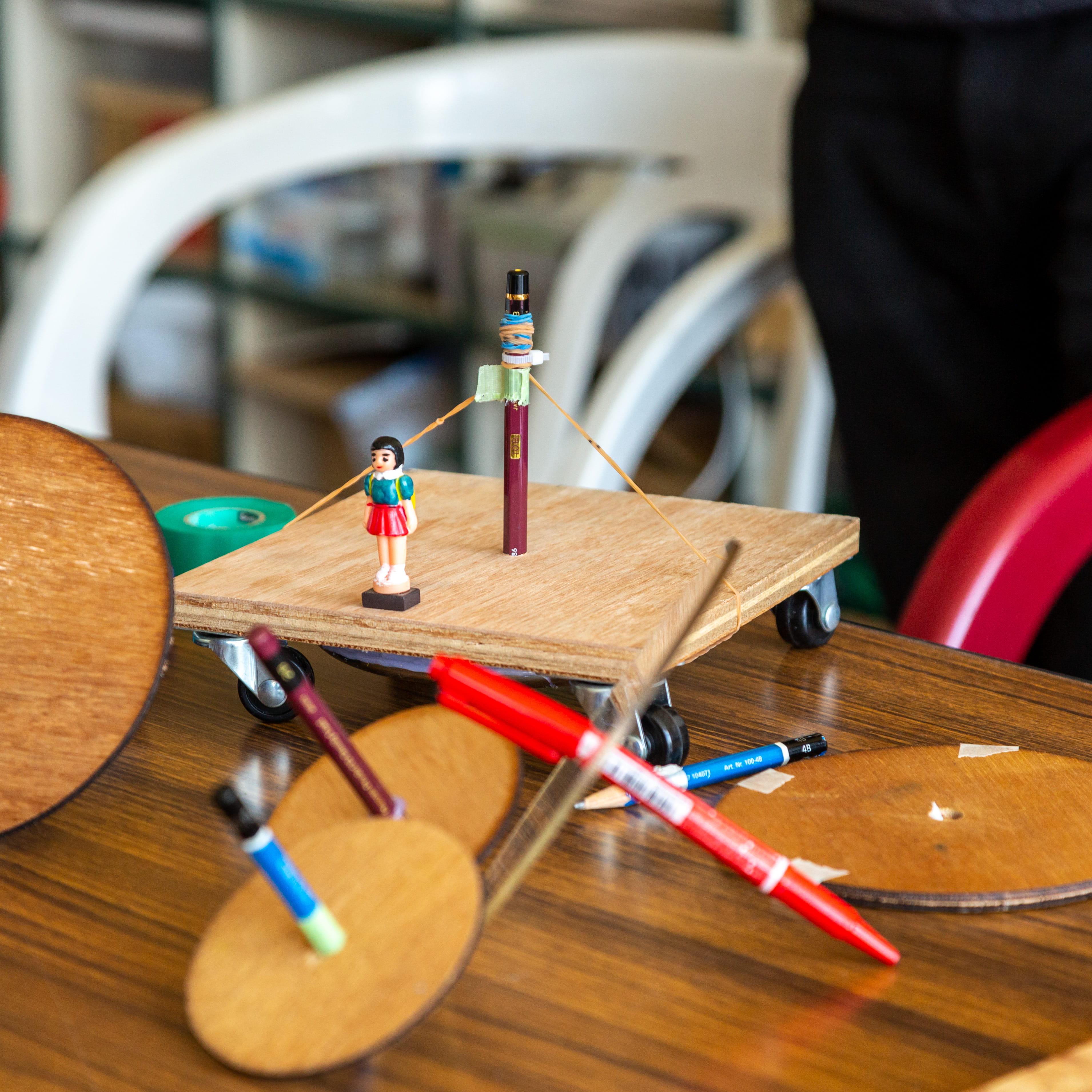 廃校の教室をアトリエに、 古くなり使われなくなったものや、 自然の素材を集めて実験中。