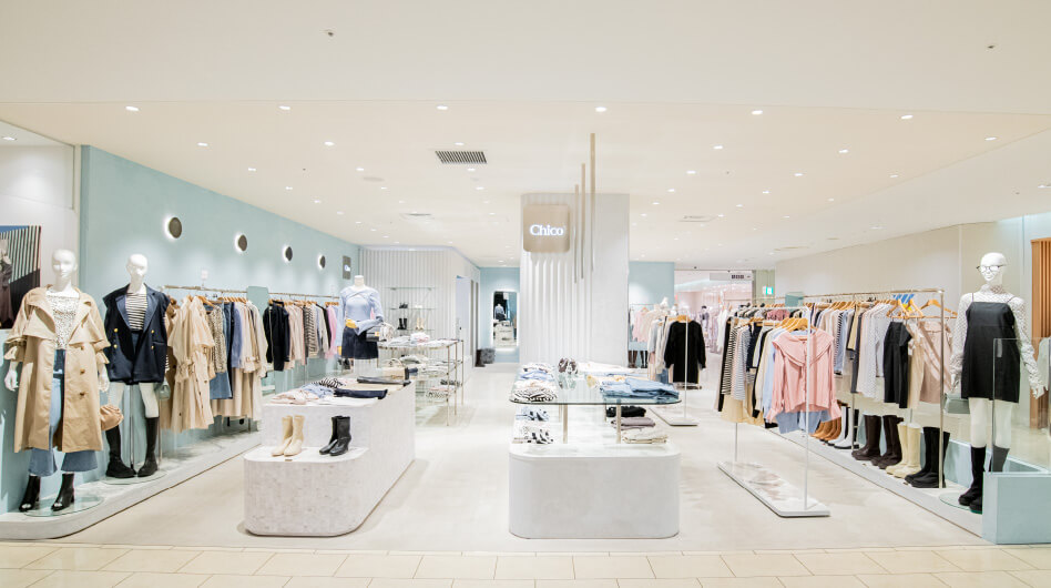 女性らしく、かわいいアイテムが揃うChico。ルミネ立川店では、ご来店の度に新鮮な印象になるように、1日に数回ディスプレイをチェンジしています。ぜひ足を運んでファッションの参考にしてみてください。