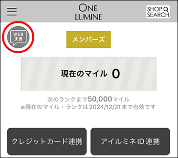 「WEB決済用カード・マイル加算用カードの登録/解除を行う」をタップ。